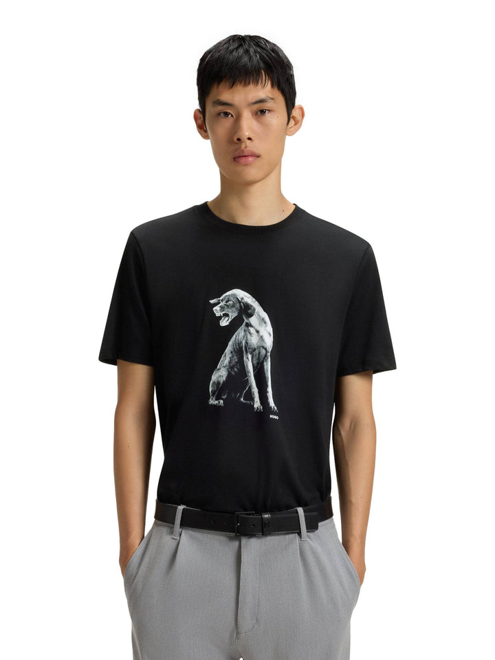 Τύπωμα μπροστά έναν λευκό σκύλο.