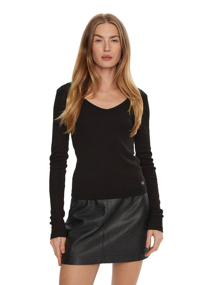 ΓΥΝΑΙΚΕΙΟ ΜΑΚΡΥΜΑΝΙΚΟ CALVIN KLEIN JEANS WOVEN LABEL RIB V-NECK