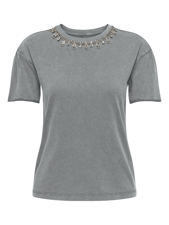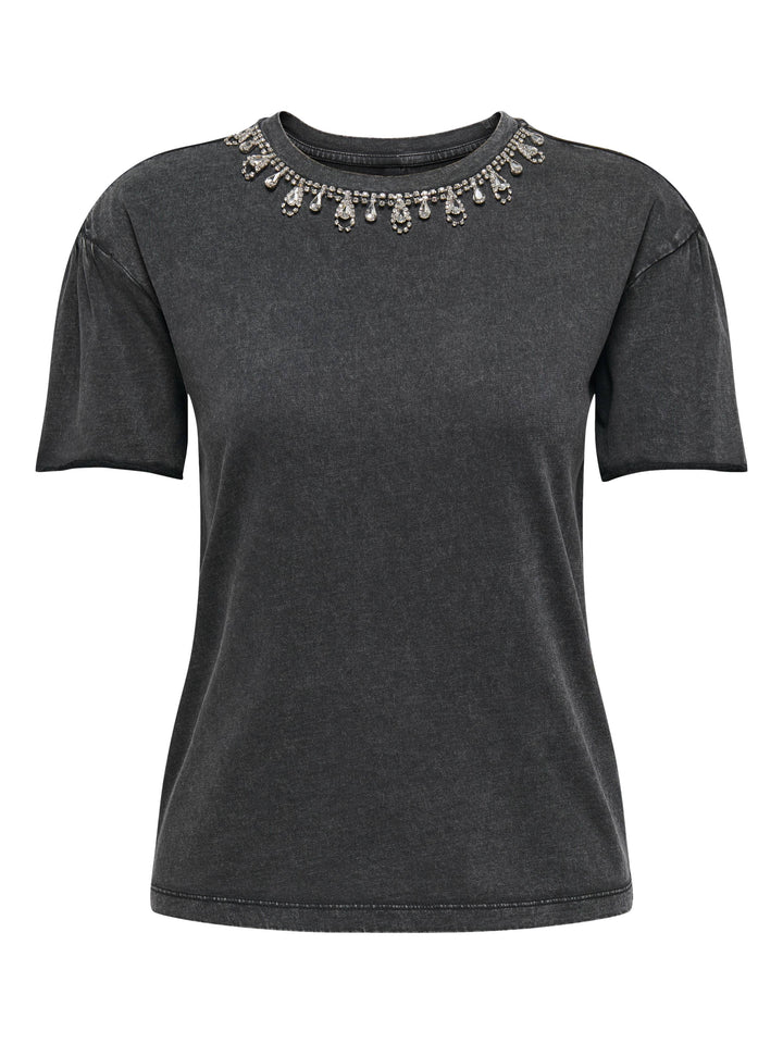 Κανονική λαιμόκοψη με γυαλιστερές πέτρες.