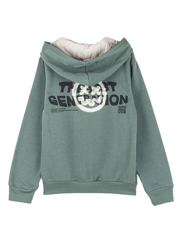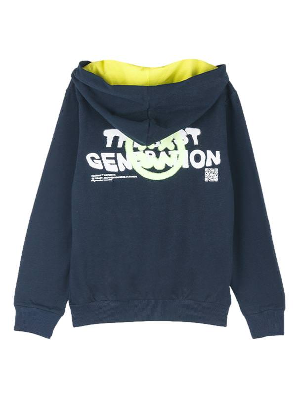 Ζακέτα με κουκούλα και κλείσιμο φερμουάρ.