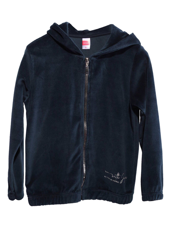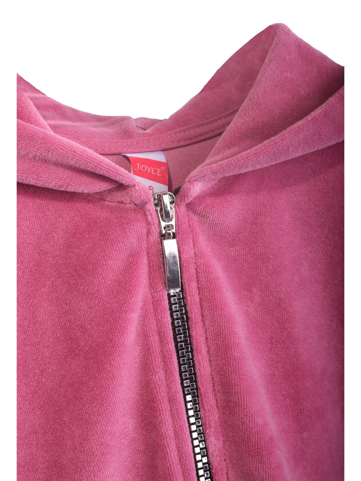 Βελουτέ ζακέτα με κουκούλα και κλείσιμο με φερμουάρ.